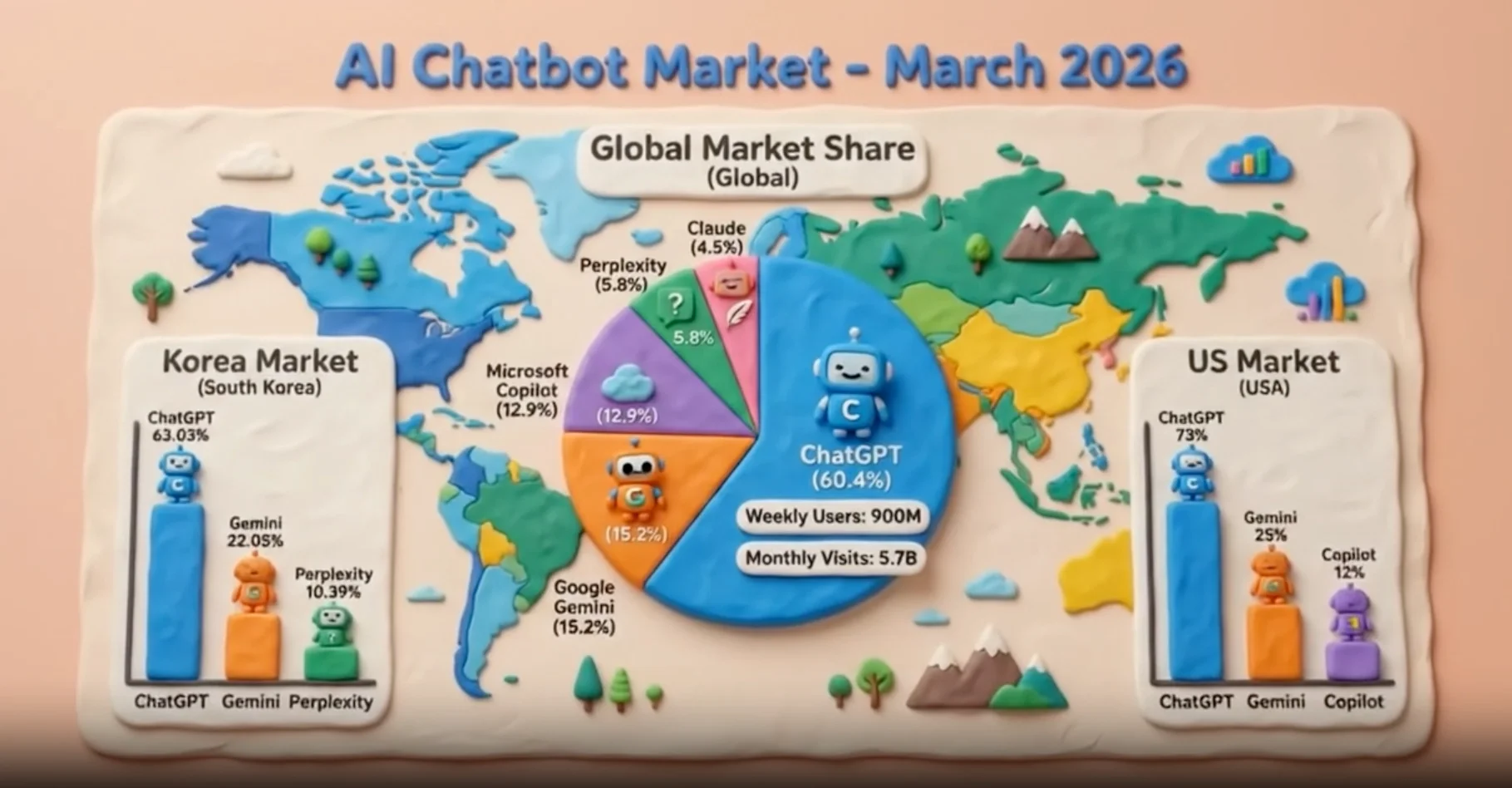 2026년 3월 현재, ChatGPT는 여전히 AI 챗봇 시장의 절대 강자로 자리 잡고 있지만, 시장은 빠르게 다각화되고 있습니다.