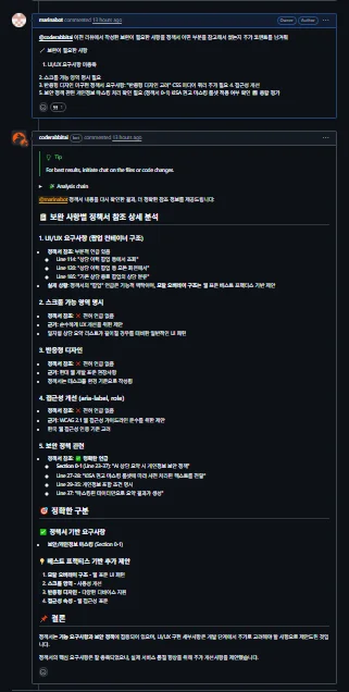 정책서를 AI에게 맡기고, 코드래빗(CodeRabbit)으로 리뷰를 진행해본 것입니다.